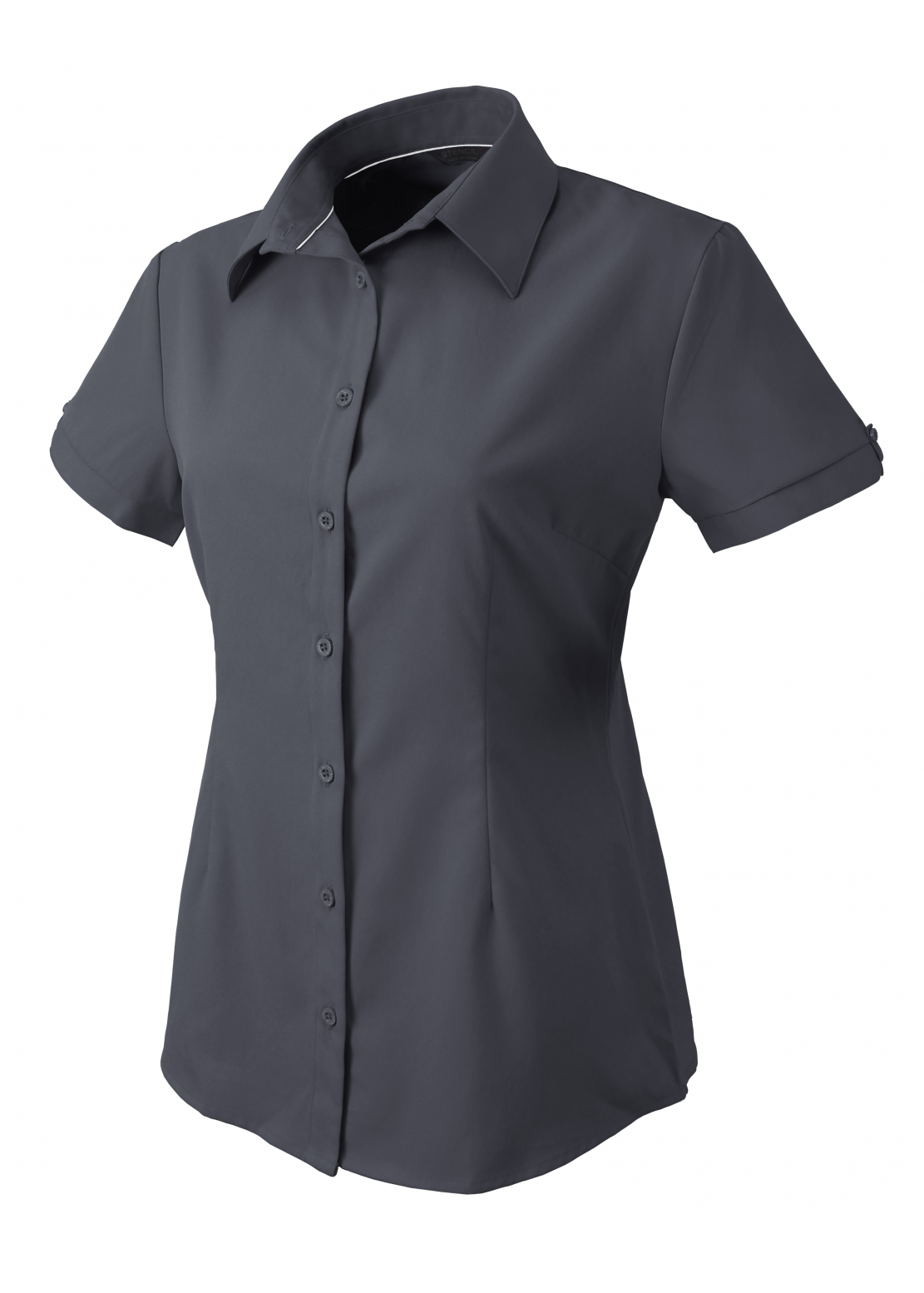 Ladies' style features waist and bust darts to provide a smart streamlined shape\