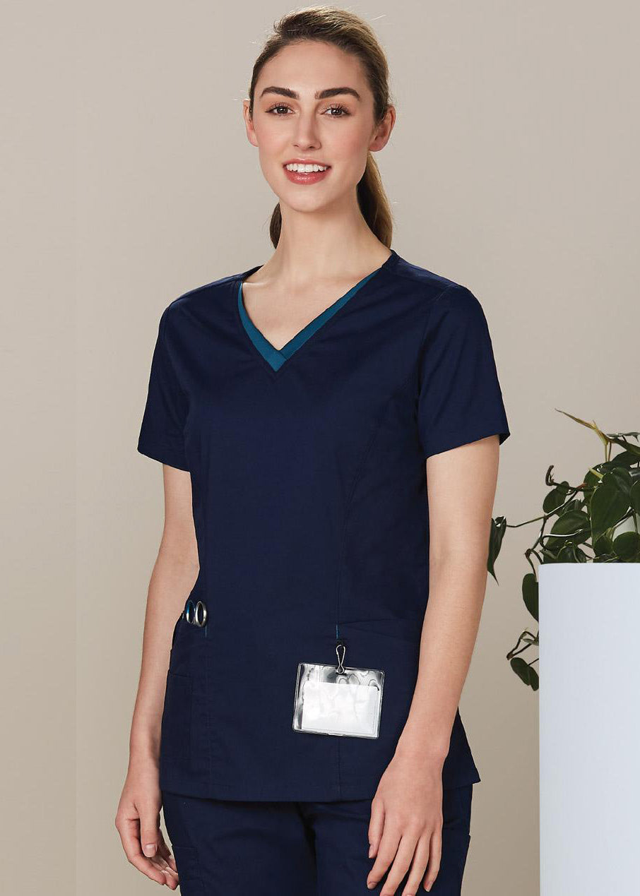 Winning Spirit Ladies V-Neck Contrast Trim Scrub Top